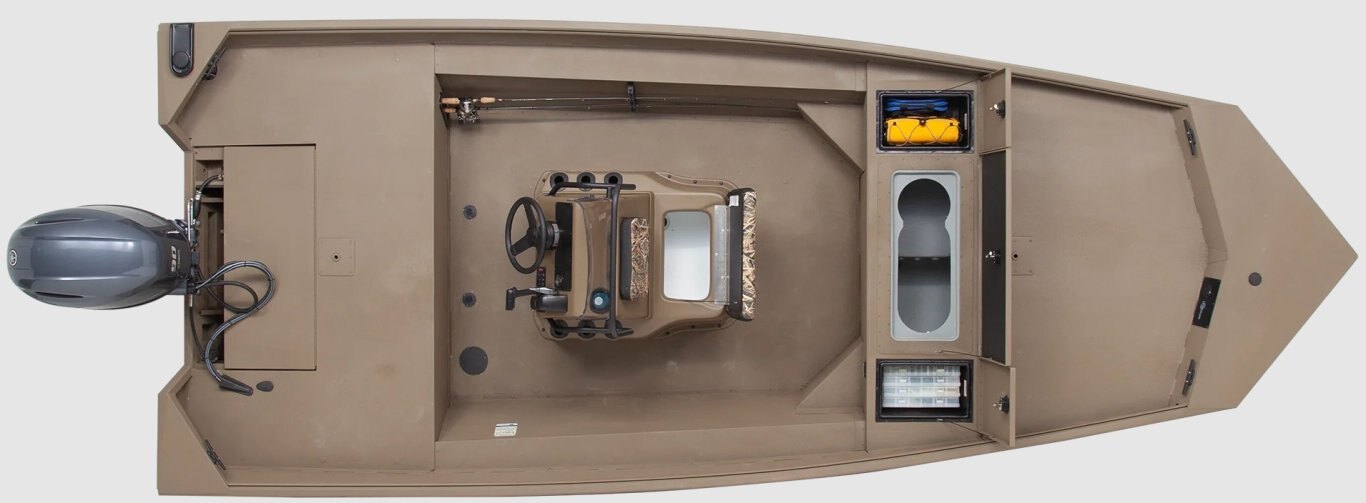 Spacious side console layout offers comfortable steering and control while leaving the deck wide open for fishing, hunting or hauling gear.
