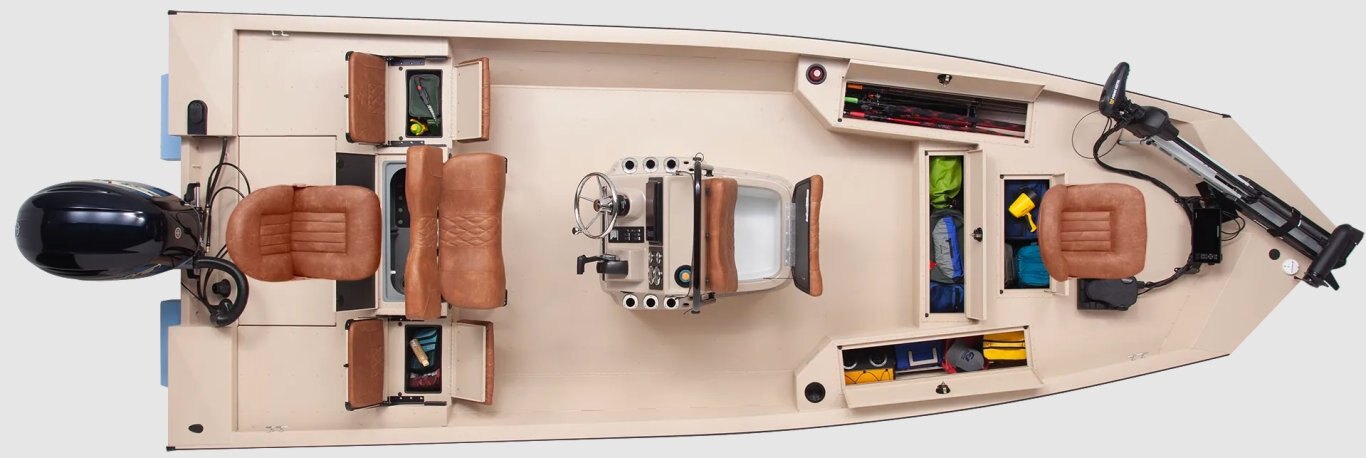 So much to like about this console with tackle tray storage, under seat livewell and optional black rails.