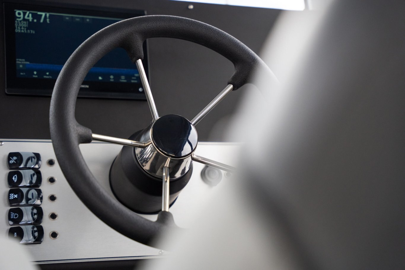 • Hydraulic steering with stainless steel wheel