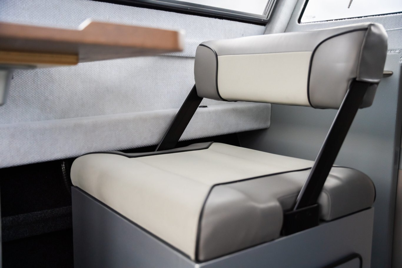 • 2 Side facing bench seats, 1 forward facing passenger bench seat. All equipped with under seat storage.