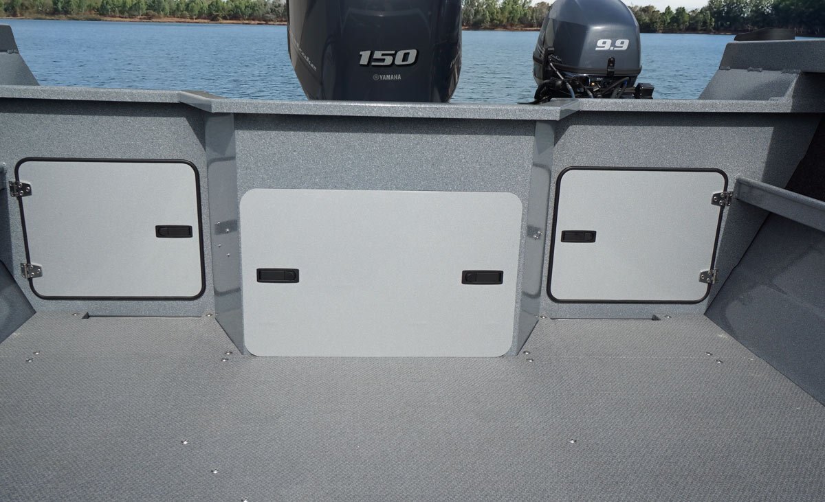 Standard Interior Features Easy care premium marine vinyl wrap floor 2 Fishmaster XL seats on fixed pedestals Passenger side grab handle Rod storage for 6 rods (3 per side) Lockable bow storage Navigational and anchor light storage 2 Drink holders