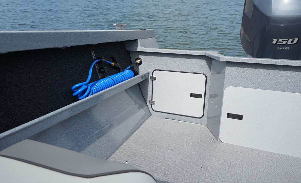 Add A Package To Save $$$ Angler Package Port and starboard 36″ silver painted storage bench seat Port & starboard pantographic windshield wipers Bow fish locker Fuel line plumbing for kicker with shutoff valve Drop curtain with roll up center door